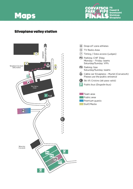 Für VIP-Gäste steht ein exklusiver Parkplatz (P3) unterhalb der Talstation Surlej zur Verfügung. Bitte halte dein Ticket bereit, um Zugang zum VIP-Parkplatz (P3) zu erhalten.